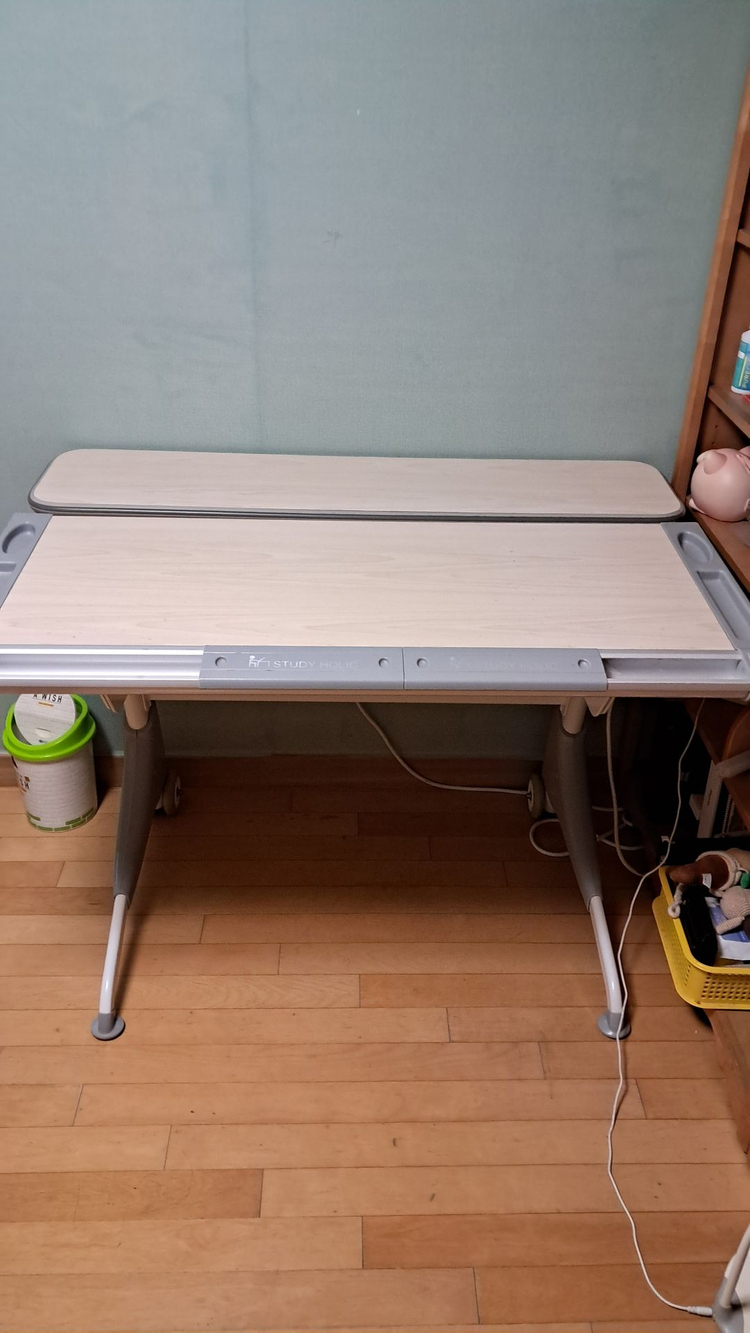 스터디 홀릭 각도조절 책상입니다. 독서나 그리기 등 아이 학습용으로 좋습니다. 새거 같은 상태로 깨끗합니다. 책장은 우드피아 제품으로 역시 깨끗합니다. 분당선 보정역 근처에 있습니다.
