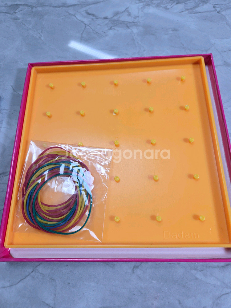 지오보드 새상품 입니다. 박스와 함께 구성되어 있어요. 지오보드와 고무줄이 포함되어 있습니다 만지고, 놀면서 체험하는 유아교구입니다. 개당 2000원으로 판매합니다. 필요하신 개수만큼 구매 가능해요~ 총 52개 있습니다. 필요하신 분 연락주세요~
