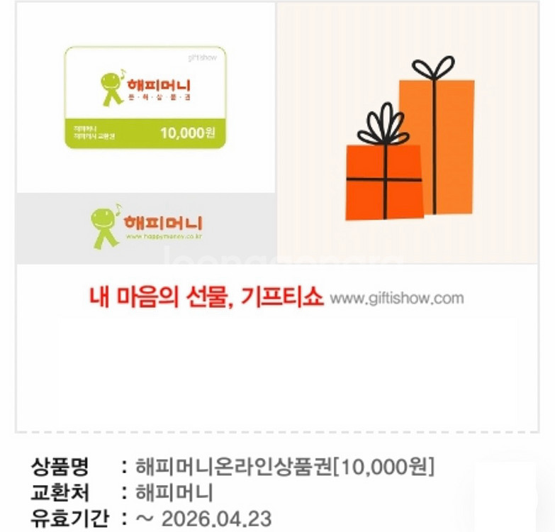 개인정보(거래정보)를 주고받는 행위는 사기에 노출될 수 있으므로 즉시 중고나라로 신고해 주세요해피머니 온라인상품권 1만원권 판매 4월 23일 까지 9000원 0일공 99일칠 09일일