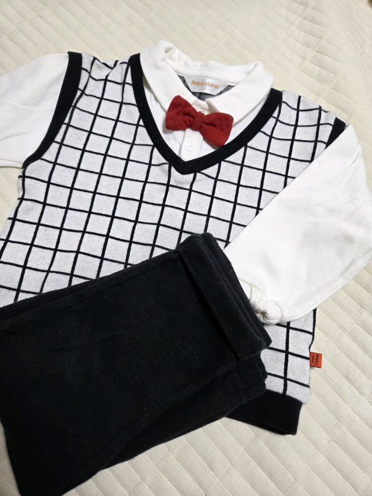 해피랜드 남아 정장 세트 100사이즈입니다! 실제로 입히면 더 고급스럽고 예뻐요^^ 기념일이나 스튜디오사진찍을때만 입어서 상태 좋습니다! - 턱시도 스타일로 특별한 날에 입히기 좋아요 - 면 100% 소재로 부드럽고 편안합니다 - 사이즈는 100(24M)이며 18~24개월 아기에게 적합합니다 기념일이나 사진찍을때 입으면 좋아요^^