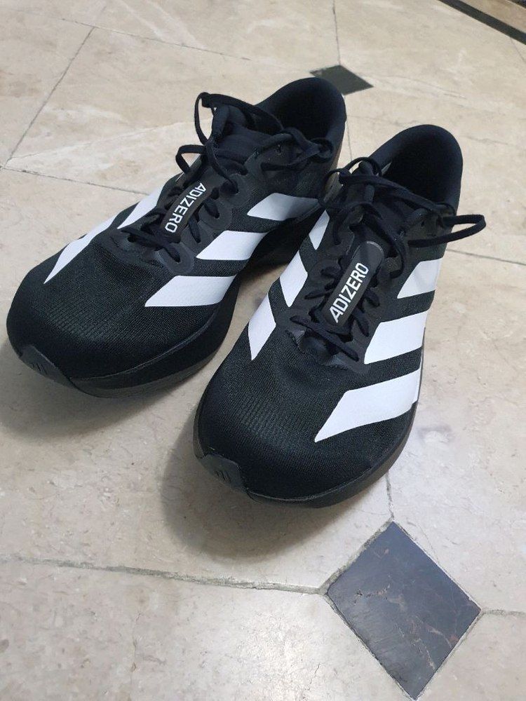 백화점에서 정가주고 구매한 정품이며 아디다스코리아택 및 박스 모든 구성품 새것과 동일합니다 구매후 아파트 런닝머신1회 사용했습니다 10k뜀