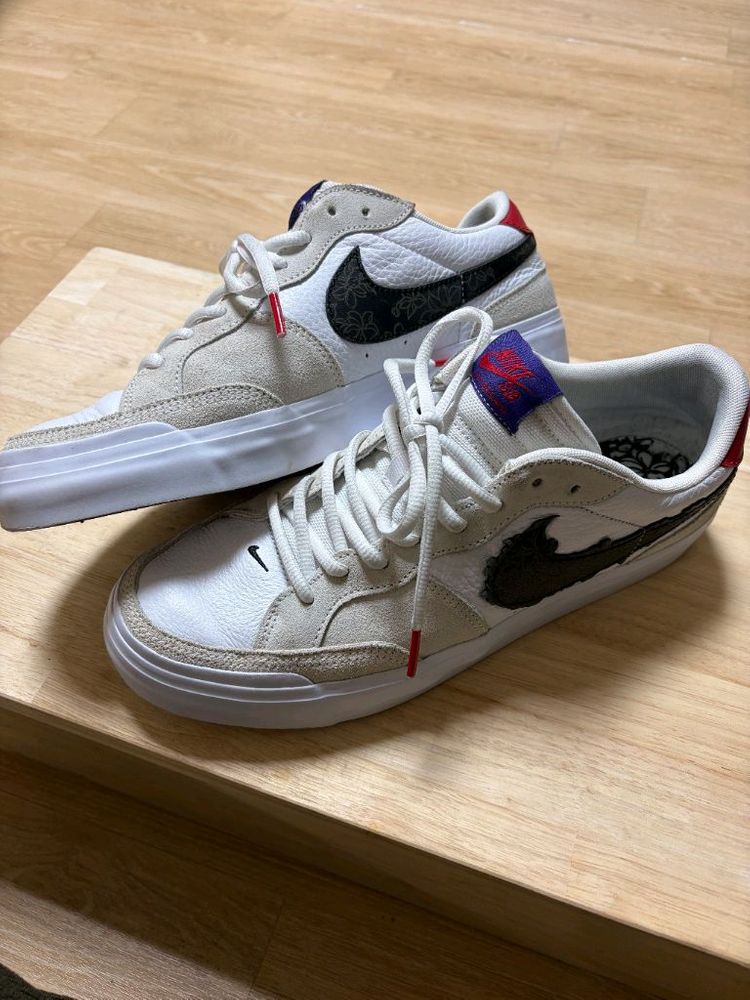 크림 16만원 구매 구성품 본품 실착 2회 스카이 브라운 입상시 콜라보된 제품입니다. 깔창에 예쁜 일본식 디자인으로 되어있고 스우시도 플로럴 디자인입니다. 남녀공용이 아닌 우먼스이기때문에 큰 사이즈 265~290은 희소성덕에 15만원이상에 거래됩니다. 270사이즈 착 추천합니다.