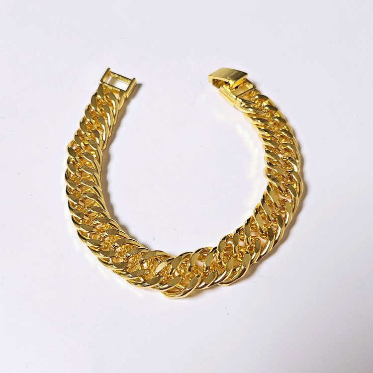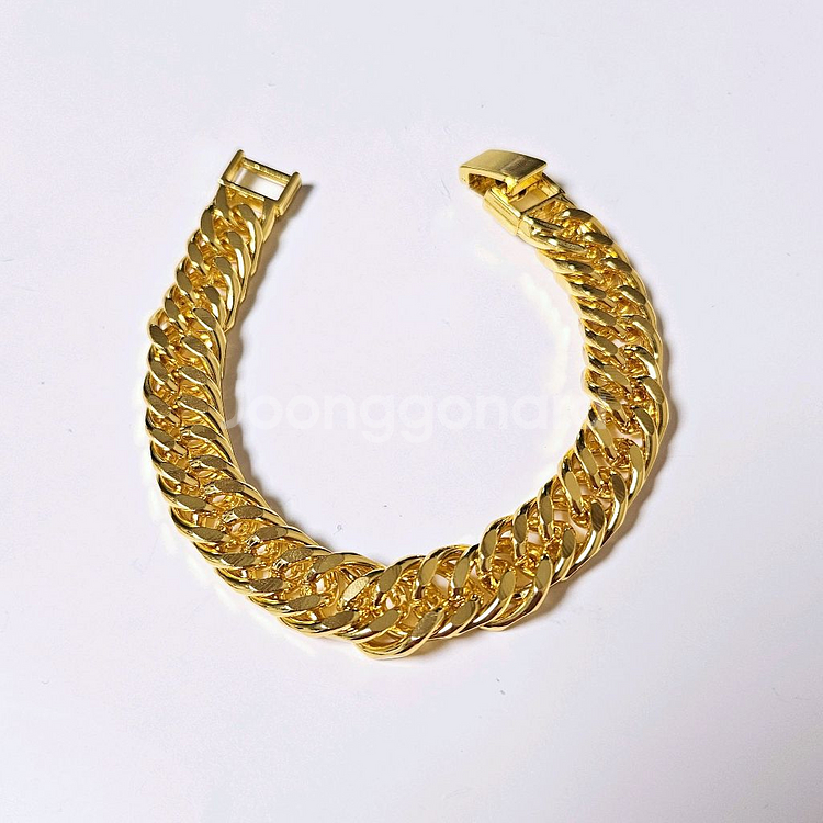 제가 파는 다른 상품이랑 같이 하시면 [에눌] 해드립니다 304 의료용 스테인리스 소재로 샤워도 가능한 소재입니다 두툼한 두께 12mm 둘레 21cm에 노란 골드색으로 실물색 멋집니다 튼튼한 클립형으로 고리형과 다르게 성인남성 힘으로도 끊어지지않고 잃어버릴 일없이 착용할 수 있습니다