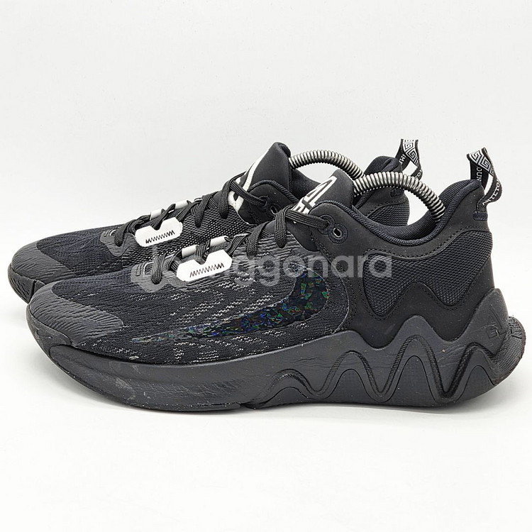 사이즈 275 나이키의 바스켓볼 슈즈 모델인 야니스 임모탈리티 2 입니다. 멋진 디자인과 컬러, 역스우쉬 홀로그램 로고 역시 만족스러운 슈즈로, 착화감이나 접지력 또한 우수합니다. 자연스러운 사용감외 좋은 수준의 컨디션을 유지중입니다.