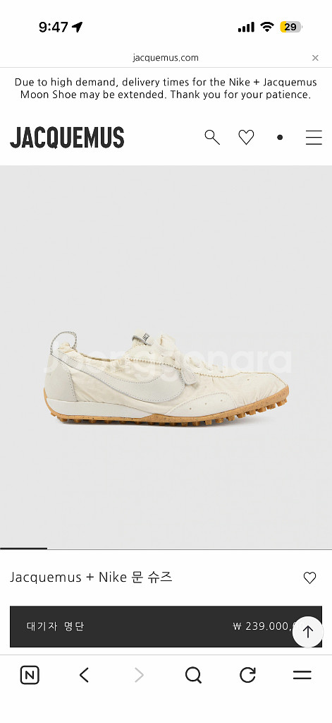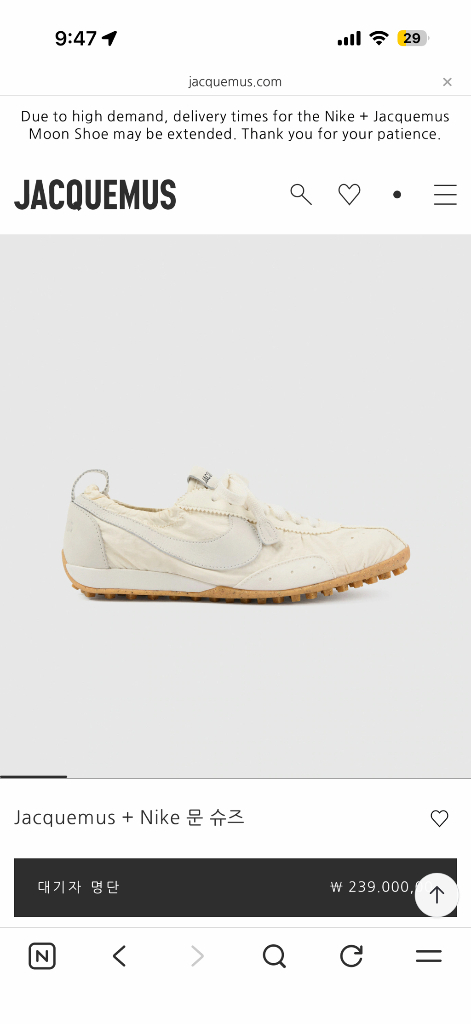 자크뮈스X나이키 문슈 문슈즈 사이즈 EU 44.5입니다. W 12.5/ M10 280-285 신으시는 분들께 적합한 사이즈로 알고있어요- 참고만 해주세요! 교환도 가능해요 조금 더 작은사이즈로 교환하실분 구해봐요,,,, 🥹 님 43 or 38 저 44.5