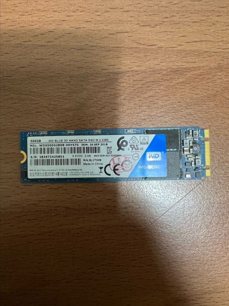 WD blue M.2 SATA 500gb 팝니다 하드튠, 크리스탈 인포,하드센티널 테스트 O 포맷완료 상태입니다. 택배, 직거래 다 가능합니다. 택배비 별도 작은 박스 4,000 큰 박스 5,000원입니다. (로젠택배 지정) 평일(월~금) 오후4시 입금분 당일 출고!(오후5시 일괄발송) 주말(토/일), 법정 공휴일 택배발송X