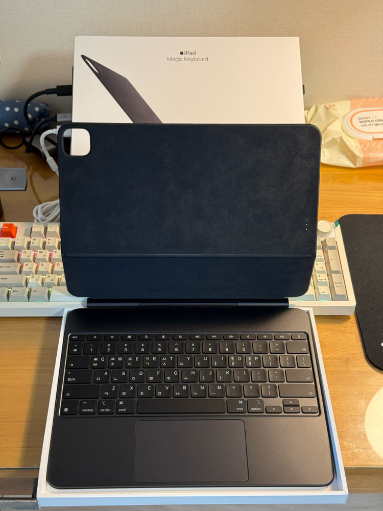 아이패드프로 M4 모델용 매직 키보드 블랙 색상 (A급) - 작년 6월에 구매해서 딱 한번 써보고 노트북 사용한다고 사용하지 않아 판매합니다. (1년 미만) - 풀박스이며 상태는 사진과 같습니다. (풀박스) - 얇고 가벼운 디자인으로 휴대성이 뛰어납니다 - 풀 사이즈 키, 백라이트, 시저 메커니즘으로 편안하고 정확한 타이핑 경험을 제공합니다 - 트랙패드가 내장되어 있어 아이패드를 더욱 편리하게 사용할 수 있습니다 새상품 가격은 47만원이며 상태 아주 좋습니다. 직거래는 홍제동에서 가능하며 네고 불가합니다.