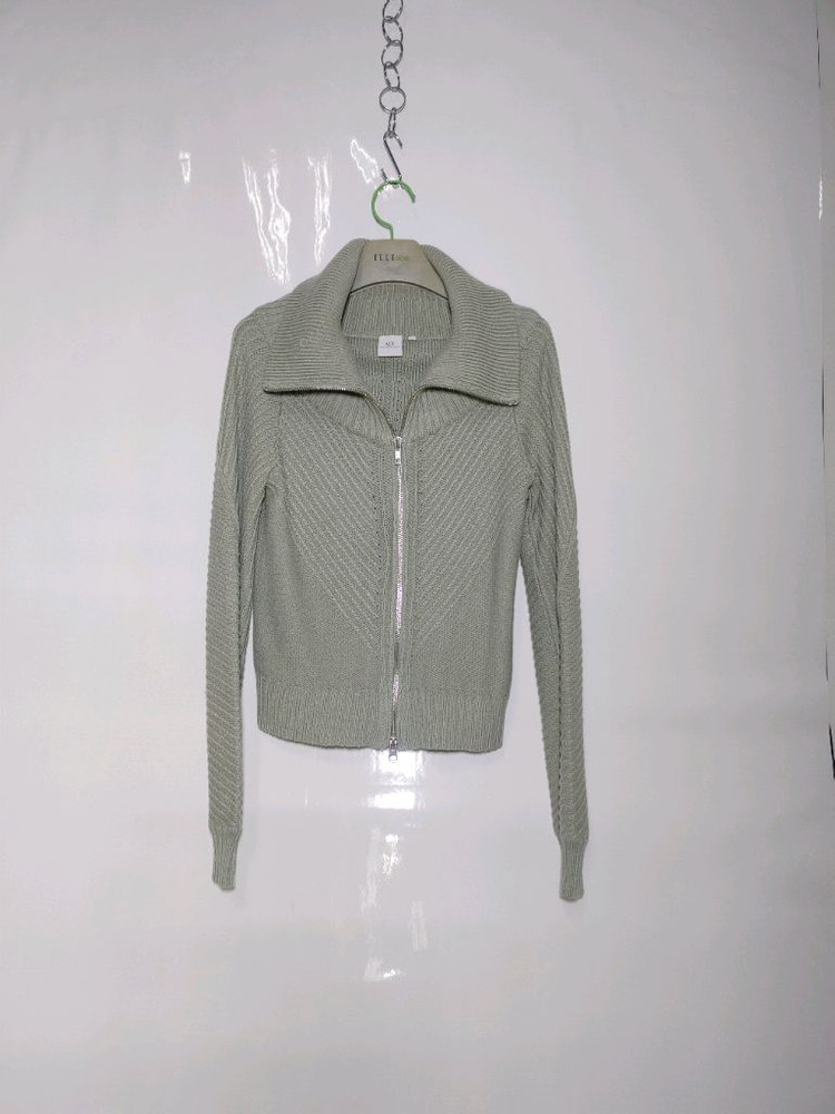 아르마니 익스체인지 여성 니트 가디건입니다. 은은한 색감의 집업 스타일이라 코디하기 용이합니다. 데일리룩으로 활용하기 좋은 제품입니다. 문의 없으시면 바로 안전결제해주시면 됩니다! ARMANI EXCHANGE 아르마니 익스체인지 여성 니트 가디건집업 톤다운 연카키색(전체 뒷사진 색상이 제일 가깝습니다) 이중 지퍼 상태 좋습니다 택사이즈 M이지만 44-55정도 됩니다 실측(cm) 어깨 34센치 가슴 39.5 팔길이 63.5 총길이 54