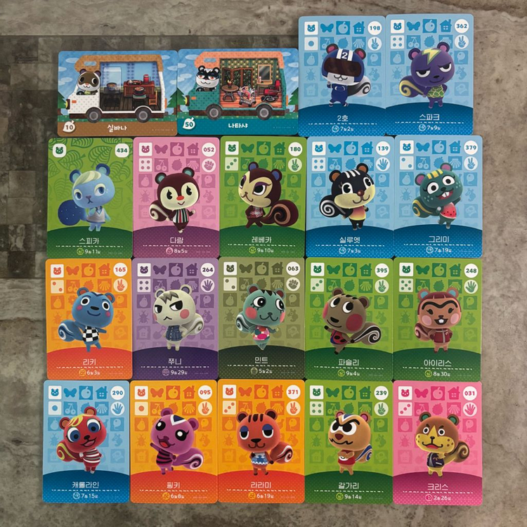 모여봐요 동물의숲 정품 아미보카드 입니다! 인식되나 확인만 해본 제품이에용 다른 상품이랑 묶음배송도 가능합니당!😊 ⭐️합계 7천원이상부터 배송 가능해요⭐️ 그리미 크리스 각 1000원 라라미 핑키 스파크 파슬리 각 2500원 레베카 민트 갈가리 캐롤라인 실루엣 각 3500원 리키 아이리스 2호 각 5500원 나타샤 6500원 실바나 8500원 스피카 13000원 다람 14000원 쭈니 54000원입니다🧡 (덤으로 랜덤 아미보 드립니다😊) 편의점 택배 3500원 cu반택 2000원 ⭐️캠핑카 리스트 https://web.joongna.com/product/208875114 ⭐️1탄 (1~50) 리스트 https://web.joongna.com/product/208885965 ⭐️1탄 (51~100) 리스트 https://web.joongna.com/product/209146027 ⭐️2탄 (101~150) 리스트 https://web.joongna.com/product/209050862 ⭐️2탄 (151~200) 리스트 https://web.joongna.com/product/209061890 ⭐️3탄 (201~260) 리스트 https://web.joongna.com/product/209321937 ⭐️3탄 (261~300) 리스트 https://web.joongna.com/product/209323107 ⭐️4탄 (301~350) 리스트 https://web.joongna.com/product/209684554 ⭐️4탄 (351~400) 리스트 https://web.joongna.com/product/209782622 ⭐️5탄 (401~448) 리스트 https://web.joongna.com/product/209794540