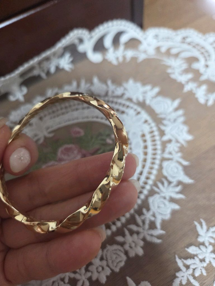14k 골드 팔찌예요. 세련된 디자인으로 데일리 착용하기 좋고, 상태도 깔끔해 보여요. 고급스러운 느낌의 골드 컬러가 매력적이에요. 2025년 11월에 온라인 롯데에서 구매했으며 집에서 한번 착용해봤어요 제 손목에는 어울리지 않아서 이쁘게 착용해주실분을 찾아요 구성품은 모두 가지고 있어요