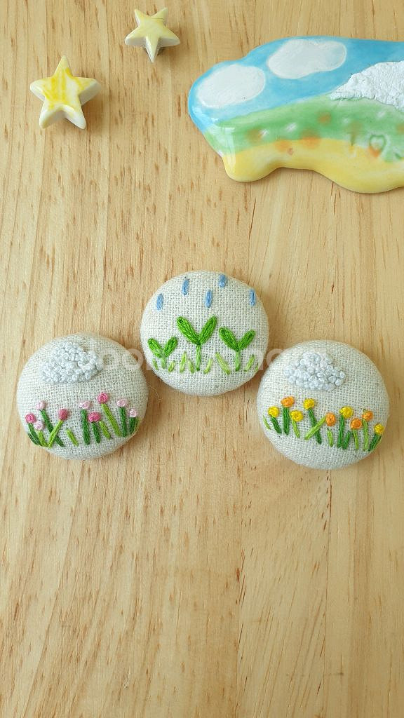 🌱🌞 프랑스자수 미니 브로치/배지 그림 일기에 🖍그린 그림처럼 수놓았어요. ▫️크기: 2.5cm ▫️원단: 코튼린넨/오트밀 색상 ▫️금액: 3개 금액 입니다. ▫️택배비 4,000원 별도(우체국택배,2~3일 소요)