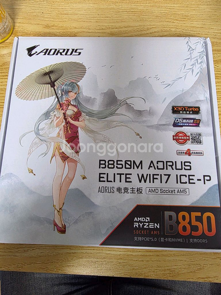 AORUS B850M ELITE WIFI7 ICE-P 메인보드 새제품입니다 박스에 담겨 있으며, 구성품 모두 포함되어 있습니다 AMD Socket AM5를 지원하며, PCIe 5.0을 지원하여 고성능 그래픽 카드와 NVMe SSD를 사용할 수 있습니다 최신 WIFI7을 지원하여 빠른 무선 인터넷 환경을 제공합니다