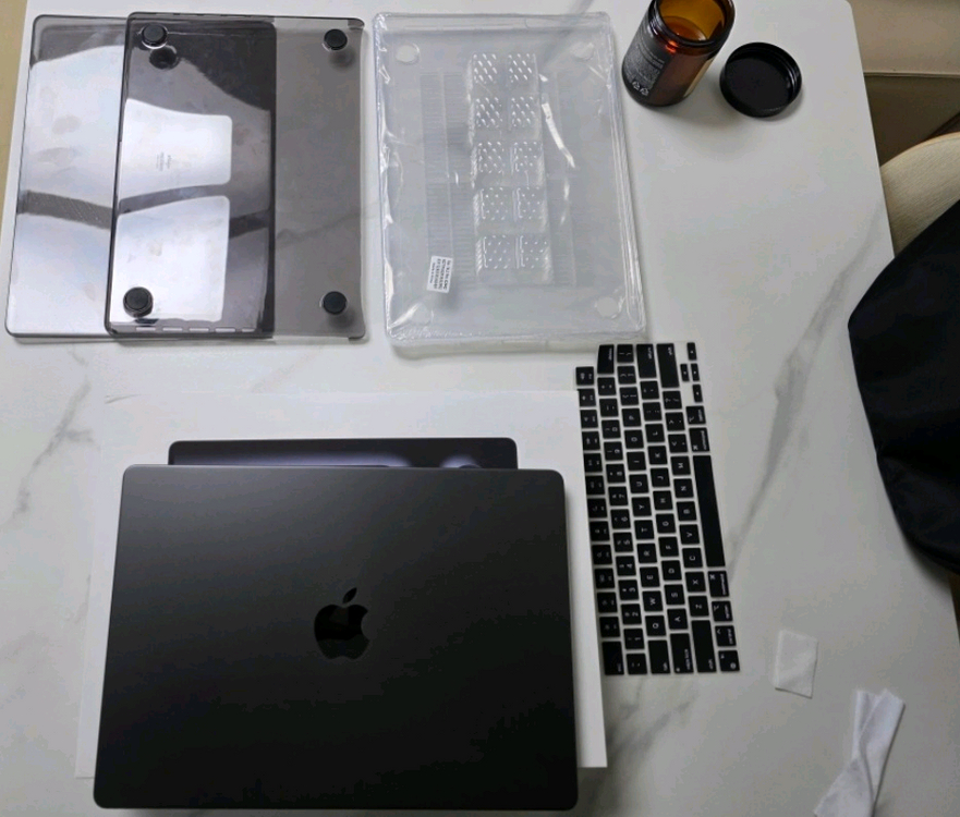 맥북프로 14인치 M4 pro 24gb 512gb 스페이스 블랙 팝니다. (MX2H3KH/A) , 실내에서만 사용하여 상태 매우 좋습니다. *배터리 사이클 11 / 효율 100% *구성품 박스 풀셋 *쿨거래시 엘라고 블랙 투명 케이스 + 일반투명케이스 + 키보드 커버 드립니다. 특히, 24gb 메모리라 오래 두고 사용하실 분에게 좋습니다 (기본형이랑 체감 있어요)