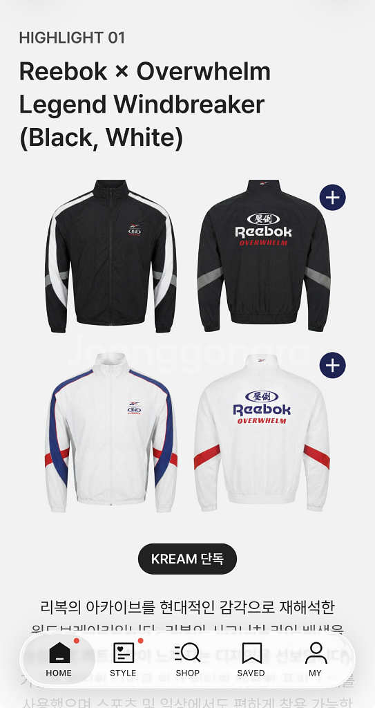 압도 리복 콜라보 블랙 바람막이 L(마지막 한장!)
