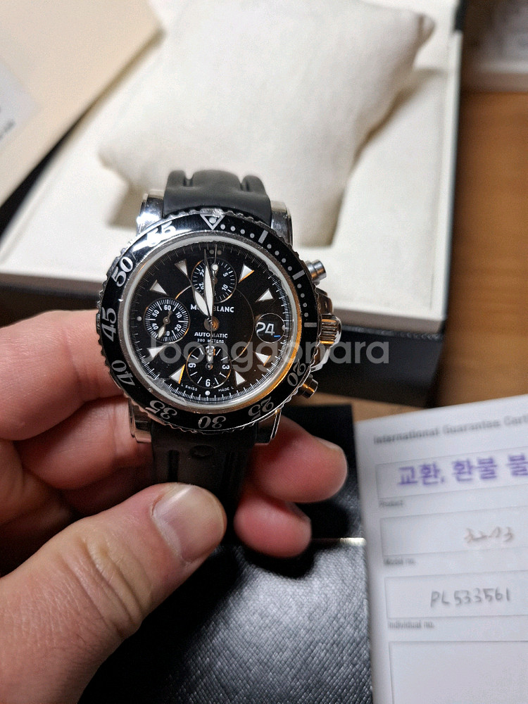 몽블랑 남성 오토매틱 시계입니다 박스 풀박스입니다., 시계 상태는 사진 참고 부탁드립니다 액정에 기스있습니다 감안해서 올립니다 시간 잘 맞습니다 2016년 5월 25일에 구매했습니다