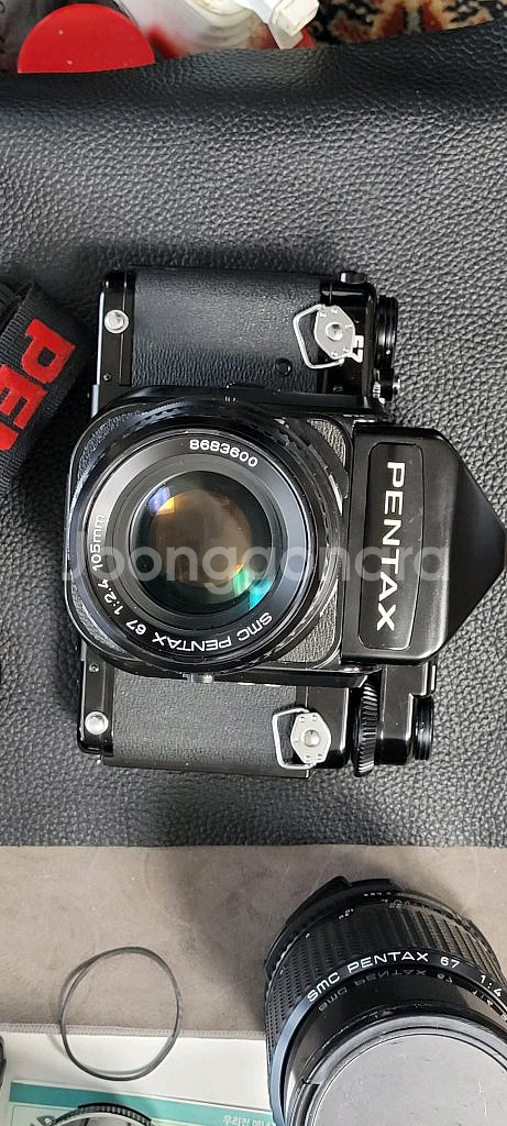 밀러업 가능한 후기형 펜탁스67 팝니다 노출기능 이상 없고 작동 하자없습니다 사용감 없진 않지만 양호합니다 105미리 f2.4 smc표준포함 130생각 합니다 35mm ,어안 타쿠마 A급 40만 200mm망원 smc 15만 300미리 망원 smc 15만(케스포함) 일괄 190생각합니다 바디와 105표준은일괄로만 다른것은개별로 판매 가능합니다 인천 청라동 직거래 원합니다