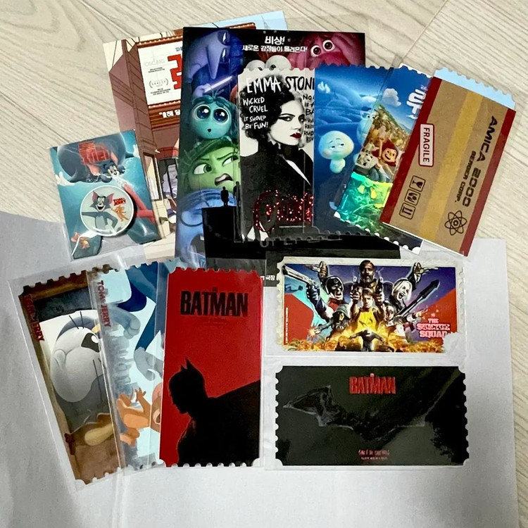 메가박스 오리지널 티켓 --> 모든 오티는 수령 즉시 OPP 보관하여 상태 최상이며 증정된 구성품 일괄 풀셋입니다 더배트맨 2종 일괄 25000 수어사이드 스쿼드 15000 루카(오티+스티커) 12000 톰과제리, 크루엘라 판매중 소울, 로봇드림 완료 초기 제외 다른 오티들도 거의 있으니 찾는 것 있으시면 편하게 문의 주세요 알뜰반값택배 2500 / 일반택배 4500 포장 안전하게 보내드립니다