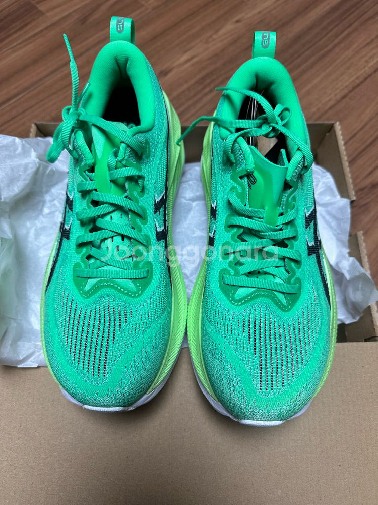 아식스 슈퍼블라스트 2 에키덴 팩 러닝화 새상품입니다 - 사이즈는 250mm입니다 - 색상은 비탈 그린/블랙입니다 FF Turbo 쿠셔닝이 적용되어 있어 뛰어난 탄력성을 제공합니다 - 가볍고 통기성이 좋은 갑피로 제작되어 편안한 착용감을 줍니다 박스에 담겨 있으며, 택도 그대로 달려 있습니다. 올 1월에 일본 여행때 하라주쿠 매장에서 구매했어요. 택배는 4000원 추가부탁드립니다.