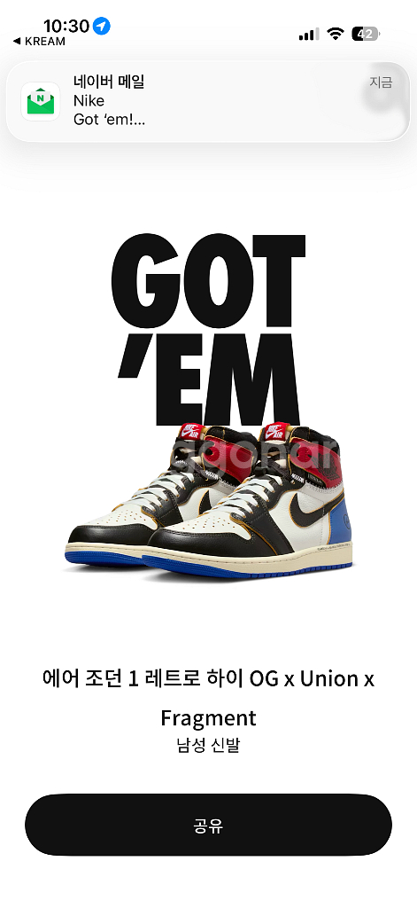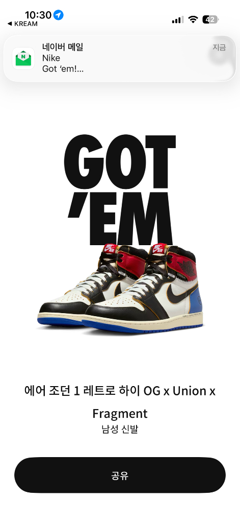 나이키 에어 조던 1 레트로 하이 OG x Union x Fragment 남성 신발 280사이즈 입니다 새상품입니다 외부 사이트로 유도 하시는데 안 됩니다