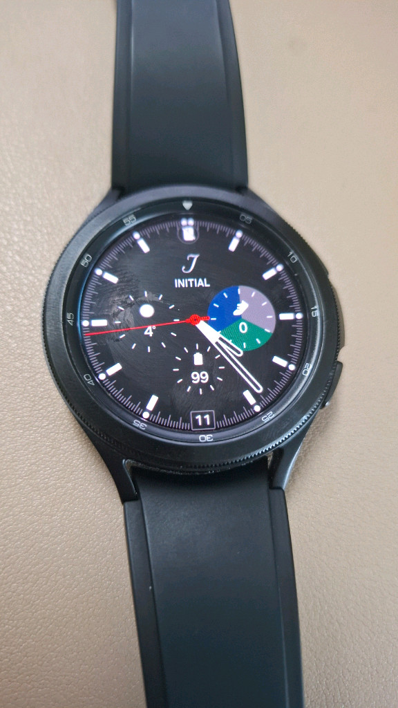 갤럭시 워치4 클래식 46mm 입니다. 충전기 포함이며 사용감은 있으나 액정은 전혀 문제 없습니다. 배터리는 24시간 전후 정도로 나옵니다.