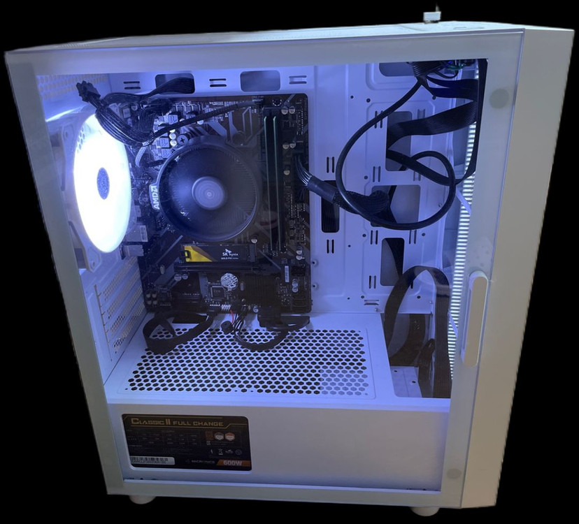 CPU: AMD 라이젠5-4세대 5600G (세잔) 메인보드 : GIGABYTE B450M K 피씨디렉트 RAM(메모리) : 삼성전자 DDR4 3200 (25600) 8gb * 2 (총 16gb) SSD(저장장치) : 하이닉스 p31 500gb 파워 : 마이크로닉스 600w 케이스 : 앱코 G20m 화이트 모니터 : 게이밍 모니터 32인치 UG-320 144Hz 모니터 추가시 + 3만원(모니터 단품 5만원, 사용감 조금 있으나 정상작동함, 스피커 따로 필요함) 필요하시면 블루투스 동글(usb처럼 꽂으면 블루투스 사용가능)랑 키보드(플린저 키보드 적당히 쓸만하나 사용감 있음)도 같이 공짜로 드려요. 본체 상태는 완전 깨끗하고, 먼지도 거의 없이 잘 관리했어요. 여동생이 컴퓨터를 맞추고 싶다해서, 부품도 다 새거 사용해서 사용했으나, 컴퓨터 사용할 일이 적어서 완전 새 컴퓨터 컨디션입니다. 인천 직거래만 하고싶어요. 택배 거래특성상 뒷탈이 생길수도 있어서 ㅜ..