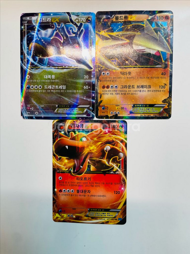 포켓몬 카드 리자몽, 몰드류, 킹드라 ex 세트로 판매합니다. 사진에서 보시는 것과 같이, 모두 EX 카드입니다. 상점 내 여러개 구매시 할인 가능합니다. 문의 없으시면 바로 안전결제해주시면 됩니다!