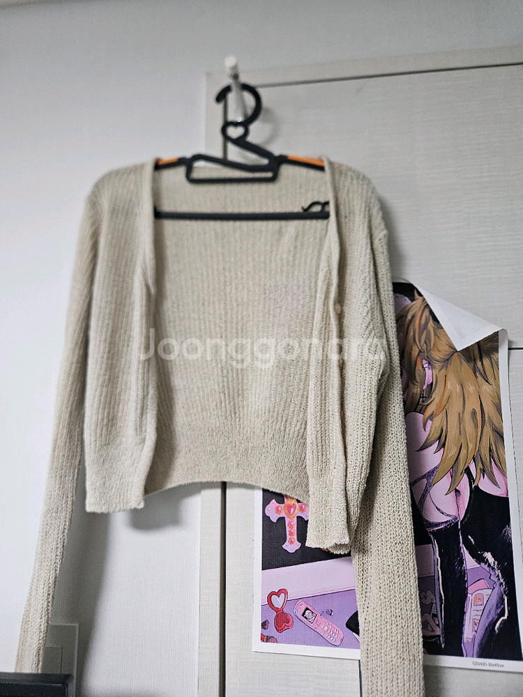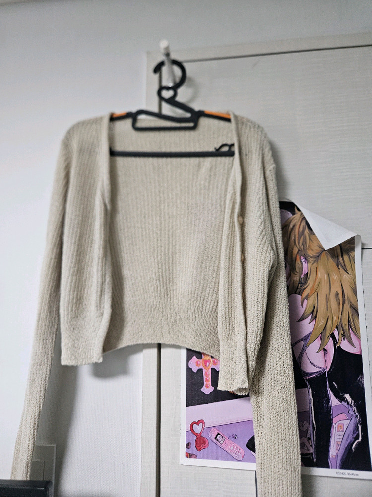 베이지 컬러 니트 가디건이에요. 크롭 길이라 스타일링하기 좋고 상태도 깔끔합니다. 데일리로 입기 딱 좋은 아이템이에요!
