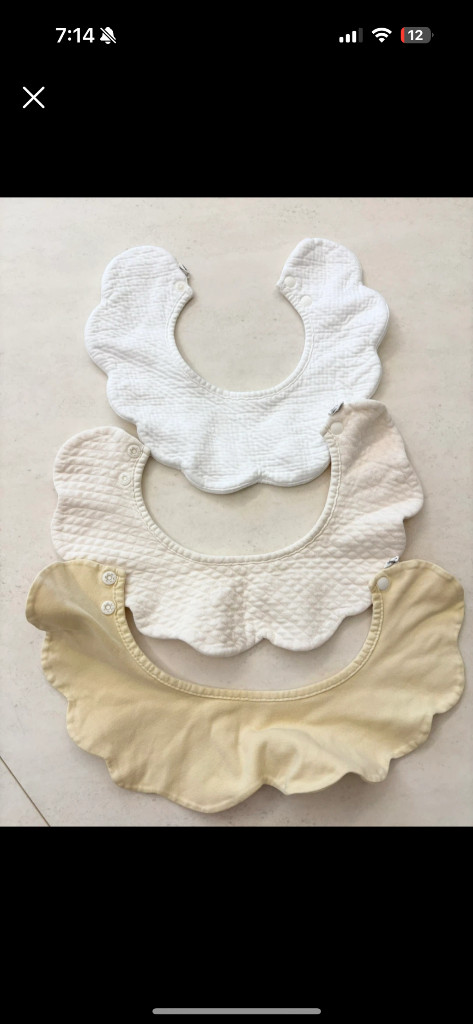 옷 입고 위에 입히면 턱받이 말고 원래디자인처럼 예뻐서 손이 많이가는 3종입니다 화이트/아이보리/옐로우 중고특성상 미세이염 있을수 있으니 동의하시는 분만 구매 부탁드리고 반품은 어려워요