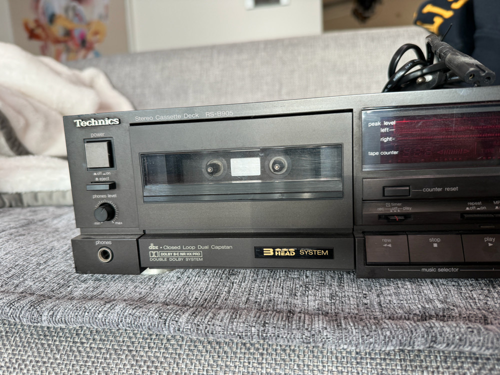 재생완벽한데 녹음레벨돌릴때 한쪽이 작아지는경우가 있습니다 레벨 몇번 돌리면 정상녹음되고 성능 좋습니다 https://naver.me/xxoJqzil?tc=shared_link 과거 수리이력입니다 1. Technics RS-B905는 1980년대 후반 출시된 테크닉스의 중상급 싱글 카세트 데크입니다. 2. 녹음용과 재생용이 분리된 3헤드 구조를 채택해 녹음 중 모니터링이 가능합니다. 3. Closed Loop Dual Capstan 구동 방식으로 테이프 주행 안정성과 음질 정확도가 뛰어납니다. 4. Dolby B, Dolby C와 함께 dbx 노이즈 리덕션을 지원해 높은 S/N 비율을 제공합니다. 5. Dolby HX Pro 기술을 적용해 고음 녹음 시 왜곡을 줄이고 헤드룸을 확장합니다. 6. Bias 및 녹음 레벨 캘리브레이션 기능을 통해 테이프 특성에 맞춘 정밀 녹음이 가능합니다. 7. Metal, Chrome, Normal 등 모든 주요 카세트 테이프 타입을 지원합니다. 8. 최대 약 20Hz–22kHz 주파수 응답으로 카세트 데크 중에서도 넓은 대역을 제공합니다. 9. 선명하고 균형 잡힌 음색이 특징이며, 안정적인 녹음 성능으로 평가받는 모델입니다.