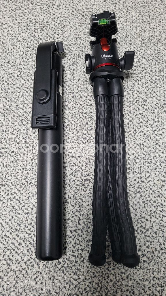 셀카봉 + 울란지 삼각대 일괄로만 판매 셀카봉을 펼치면170, 180센치 정도 높이 올라가고 삼각대로도 쓸수잇구요 울란지는 자유롭게 거치 가능한 문어삼각대 입니다. 카메라거치도 가능하고 폰거치도 자유롭습니다. 옆과 휴대폰거치 위에 핫슈도 있습니다. 사진확인 사놓고 실내에서만 사용했고 거치도 몇번안하고 방치만 했습니다. 제품 박스는 없으며 반택 일택 선택 가능합니다