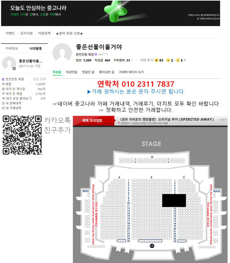 ![[가격내림] 3/17(화) 〈센과 치히로의 행방불명〉 1층 R석 앞자리 통로석 3연석 양도--0](https://img2.joongna.com/media/original/2026/03/12/1773275281700NGa_Tbg4C.png?impolicy=resize)