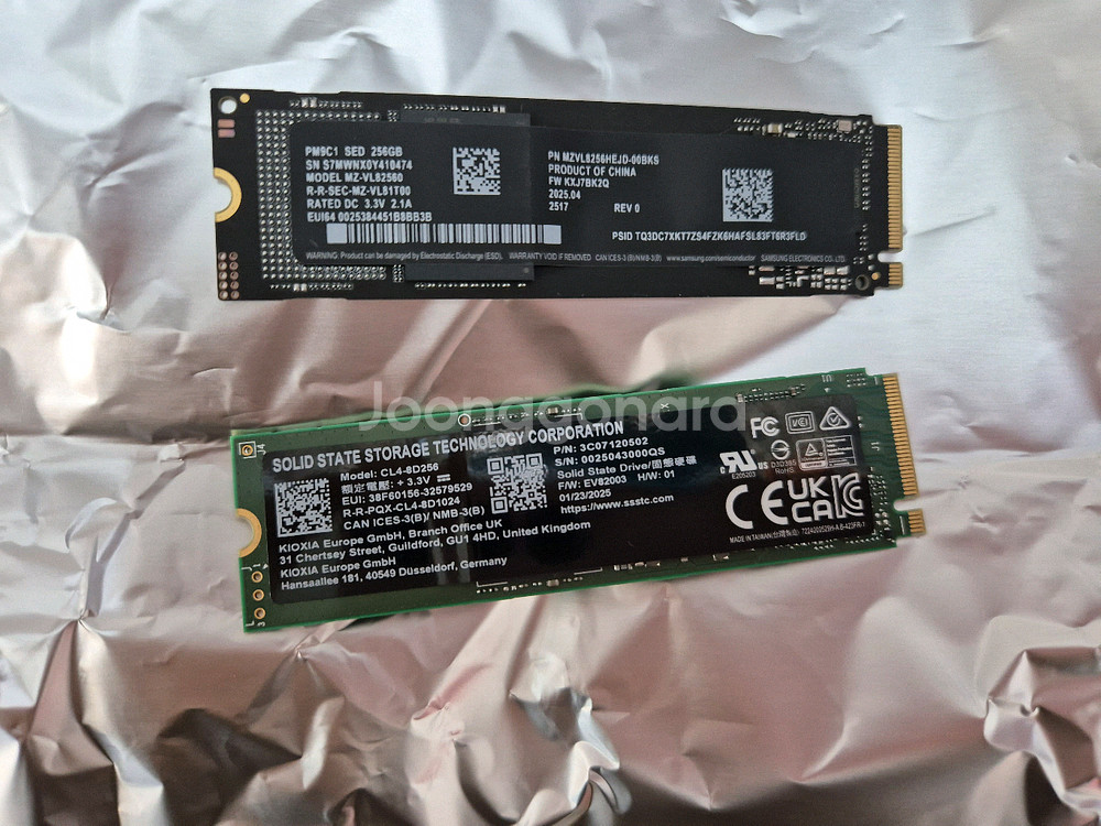 노트북 적출 미사용 새제품 SSD 팝니다 경기도 시흥 능곡역 인근 직거래 가능합니다 수량 있습니다 1. 키오시아 CL4-8D M.2 256GB - 55,000원 - 미사용 새제품 2. 삼성 PM9C1 M.2 256GB - 60,000원 - 미사용 새제품