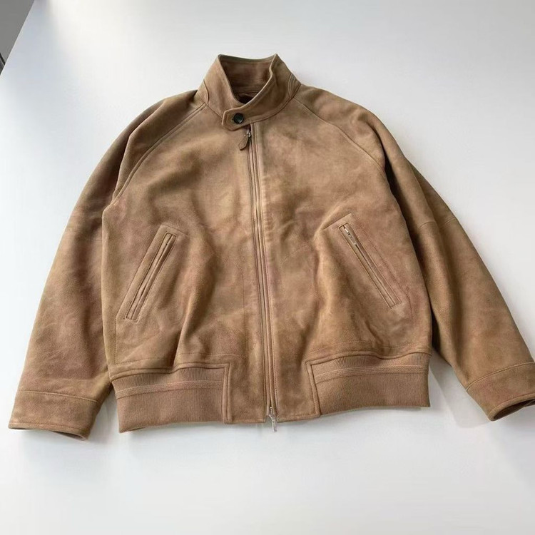 로로 피아나 스웨이드 키쿠 짚업 봄버 자켓