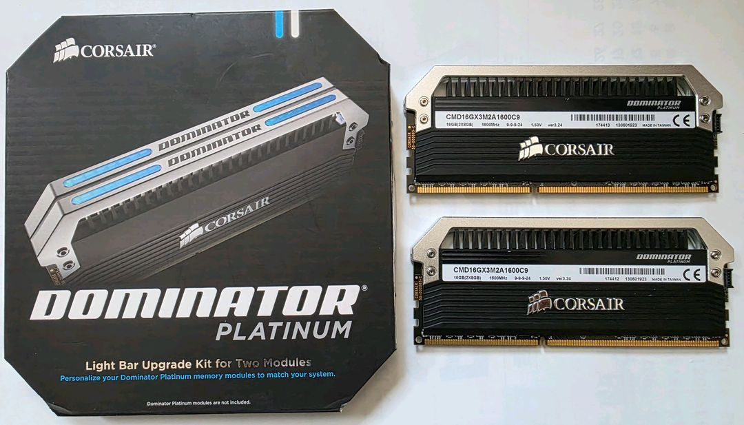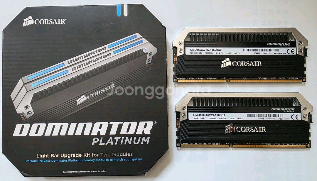 커세어 DOMINATOR플래티넘 메모리 DDR3 1600 8GB 2개 16GB 세트입니다. 박스와 구성품이 모두 포함되어 있고 상태 양호해요. 고성능 게이밍이나 작업용으로 최적입니다. 내고,안심결제 × 채팅 먼저 주세요