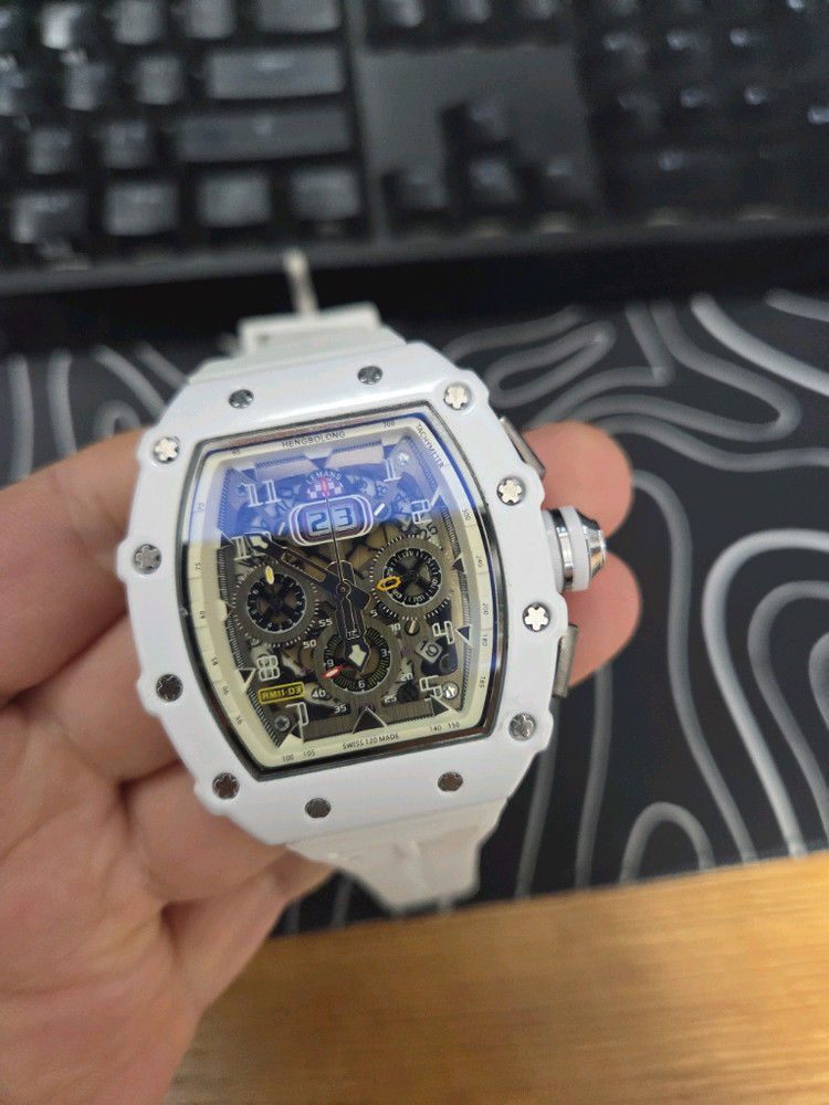 HENGBOLONG 남성용 시계입니다. 스켈레톤 디자인으로 시계 내부가 훤히 보여 더욱 매력적입니다. 독특한 디자인으로 캐주얼한 룩에도 잘 어울립니다. 퀴츠이고 중국 마이크로브랜드입니다. 다른시계나 골프용품과 교환가능합니다.
