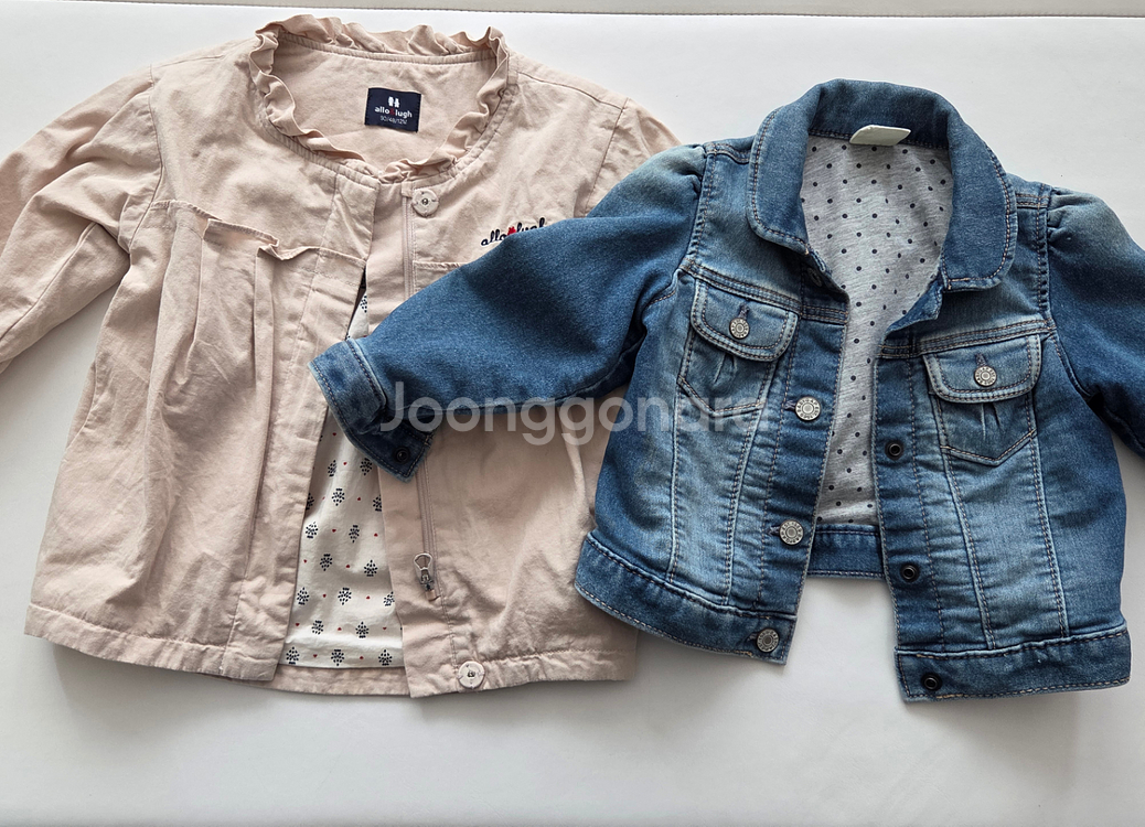 갭베이비 청자켓 18-24m 90사이즈 열고 입어도 이쁘고 닫아도 이뻐요 오염된 부분 없어요 옷걸이제외 알퐁소 점퍼 90사이즈 왼쪽팔에 점처럼 묻은게 있네요 사진참고해주세요 택배비 포함