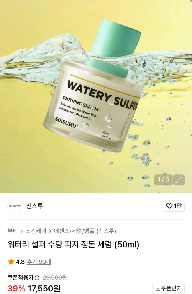 [새상품] 신스루 모공,열감진정 세럼 신스루 워터리 설퍼 82 수딩 세럼 50ml (유통기한2028.0315) 상자채 새것, 미개봉씰 있음 사계절 쓰기 좋은 모공,열감 진정&피부장벽 진정 기초😄 여드름민감피부 적합 논코메도제닉이라 트러블피부,수분부족지성,민감피부도 괜찮으실듯 거기에 세라마이드,히알루론산,병풍추출물,온천수 등 피부장벽 피부재생에 좋은 유효성분이 들어있음 후기는 이쪽봐주세요 https://naver.me/x4GwUaCC 판매가 8,500원 - 구입원하시면 안전결제 해주세요😁