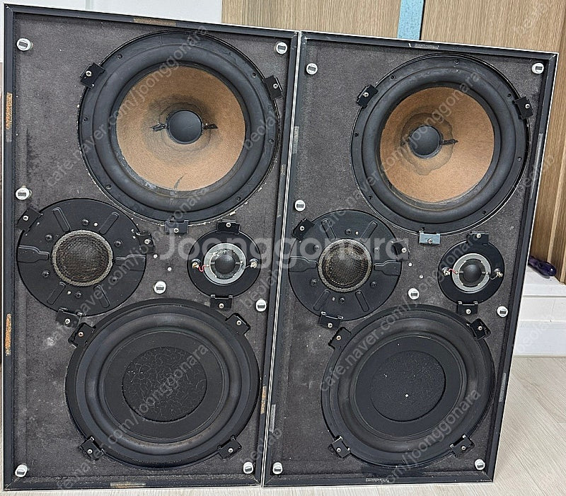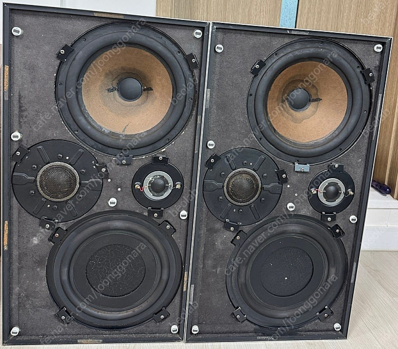 B&O 베오복스 5700 3way 알리코 버전 스피커 입니다. Bang & Olufsen Beovox 5700 5700은 1971~72년 사이에 출시된 모델로 베오복스 스피커 중 최상급 기종입니다. 두가지 버전이 있는데요. 우퍼가 10인치 알리코 버전과 페라이트 버전이 있습니다. 대부분은 페라이트로 알리코 버전이 들어간 스피커는 구하기 매우 어렵습니다. 5700을 소장하고 계신분 거의 없을 것 같구요. 해외에서도 스피커 자체가 구하기 어려운 레어템이고 부피가 워낙 크고 무거워 설사 발견해도 직수령만 가능한 아이템이고 어찌어찌해서 수입한다 하더래도 국제 배송과정에서 파손될 확율이 매우높아 온전한 상태로 들여오기 쉽지않은 스피커 입니다. 필립스 10인치 알리코 우퍼와 셀레스천 2.25인치 미드와 0.75인치 트위터가 장착되어 있고 10" 라지에이터 패시브 우퍼가 장착되어 있습니다. 패시브 우퍼는 저음을 보강해주고 좀더 깊이있는 저음을 내어주는 역할을 합니다. B&O 스피커 중 원음에 가장 가까운 소리를 구현해 주는 스피커로 방송국이나 스튜디오에서 모니터용 스피커로 많이 사용 됐을 정도로 정확한 소리를 내어주는 스피커입니다. B&O 앰프중 베오랩 5000과 매칭이 좋은 것을 알려져 있구요. 추천드리는 베스트 매칭은 켄우드 L-01A 또는 02A 앰프, 베오그램 CDX CDP, 베오복스 5700 앰프 입니다. 일반적으로 어느 수준이 넘어가면 그 이상의 소리를 기대하기 쉽지 않은데, 앰프가 가지고 있는 고유의 특성과 성능을 가감없이 발휘하게 해주는 스피커 입니다. 01A나 02A를 연결해도 흠잡을데 없는 음질 퀄리티 이지만 앰프 체급이 올라가도 그에 걸맞는 퀄리티 높은 음질을 내어줍니다. 기존에 들어보셨던 베오복스 스피커 소리와는 확실히 질적인 차이를 느끼실 수 있을 듯 합니다. 상판쪽에 상처가 좀 있긴 하지만 세월대비 외관상태 좋습니다. 지역은 서울 입니다. 물품 특성상 직거래 희망합니다. 스펙 100 Watt max. Power impedance: 4 ohms Frequency range: 35 - 20,000 Hz max. harmonic distortion: <1% woofer: 22.5cm Philips woofer mid tone: Celestion MF 500 tweeter: Celestion HF 2000 passive radiator 25cm crossover frequencies 600 - 6000 Hz dimensions: 36 x 66 x 30 cm weight: 22.5 kg