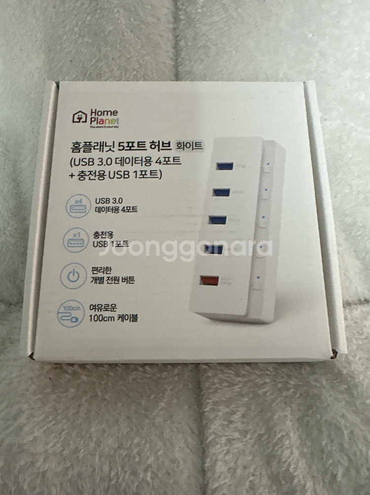 홈플래닛 5포트 USB 3.0 유전원 허브 화이트 새제품 입니다 - USB 3.0 데이터 포트 4개와 충전용 USB 포트 1개로 구성되어 있습니다 - 안정적인 유전원 전력 공급이 가능합니다 - 개별 전원 버튼이 있어 편리하게 사용할 수 있습니다