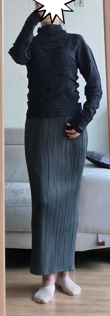이세이미야케중에서 최고값나가는 ISSEYMIYAKE 꼬깃한 반넥의 플리츠 블라우스입니다. 먹색에 네이비컬러 믹스된 신비로운 컬러입니다 일본제 플리츠롱스커트 안입은 새옷 같이 드려요(이세이미야케X) 총장:87cm 키작으신분은 올려입으시면 돼요:) 동생은 적당히 내려 입고 찍었어요 퀄리티는 플플과 같아요 누가입어도 몸에 맞춰주고 예뻐요! 저렴히 올립니다.