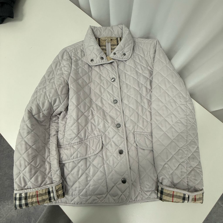 버버리 브릿 퀼팅 자켓입니다 연한 그레이 색상이고 사이즈는 S입니다 - 겉감은 100% 폴리에스터로 제작되었습니다 - 안감은 버버리 고유의 체크 패턴입니다 사진에서 보시다시피 얼룩과 오염이 존재합니다