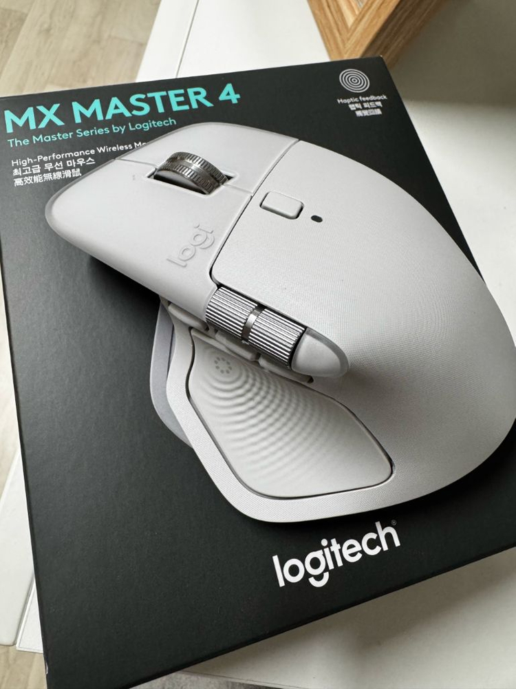 로지텍 MX Master 4 고성능 무선 마우스 미개봉 새제품입니다 구매한지 3주안되었습니다 박스 및 구성품 모두 구비되어있구요 취향이 안맞아 이전 소장품 쓰고 있어서 판매합니다 문의주세요