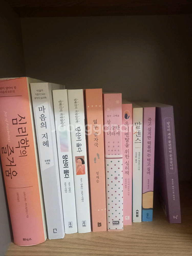 심리학&에세이책 일괄판매합니다 상태양호한편이나 심리학의 즐거움책은 형광펜 밑줄있습니다 사진책10권 일관 택포25000원입니다 관심 있으신 분들 연락주세요! ㅡㅡㅡㅡㅡㅡㅡㅡㅡㅡㅡㅡㅡㅡㅡㅡㅡㅡㅡㅡㅡㅡㅡㅡ 낱권은 3000원이며 3권이상부터 거래합니다 낱권은 택배3000추가입니다 심리학의 즐거움 마음의지혜 당신이 옳다 열두발자국 참소중한너라서 유리멘탈을 위한 심리책 말센스 죽고싶지만 떡볶이는 먹고싶어 당신이 계속 불편하면 좋겠습니다