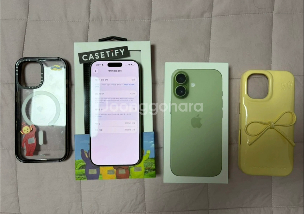 아이폰17 256G 세이지색상 풀박스 자급제폰입니다~ 배터리성능100% 사이클수 11입니다. 사용감전혀없고 기스,찍힘,수리이력없습니다~ 케이스티파이케이스 같이드립니다. 네고연락안받아요 급처분으로 싸게 판매합니다~