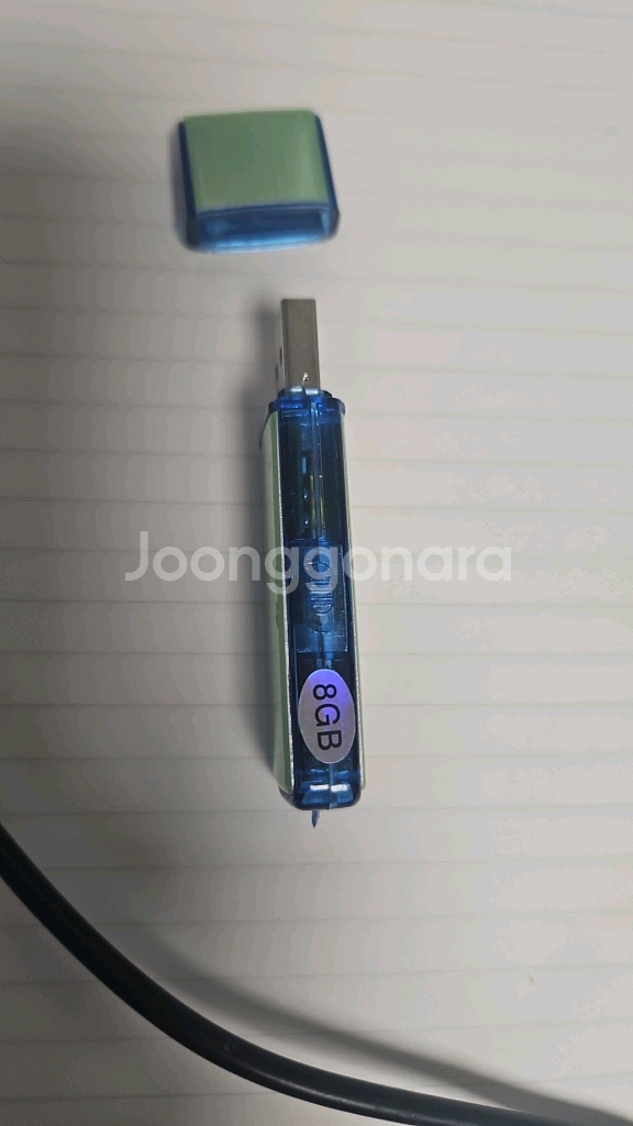8GB USB 메모리입니다. 사용감은 있지만 정상 작동하며 케이블도 함께 드려요.