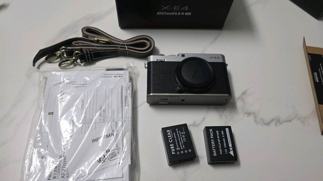 후지필름 x-e4 입니다. 구성품과 상태는 사진에 보이는 대로 입니다. 택배거래, 직거래 둘 다 가능하고, 직거래는 경기도 양주 지역에서 가능합니다. 택배거래시 입금 후 환불은 불가하고, 파손면책은 동의하신 걸로 전제하고 진행됩니다. 인증은 원하시는 방법으로 해드리겠습니다. 추가 액세서리들도 함께 구매 가능하시니 문의주세요.