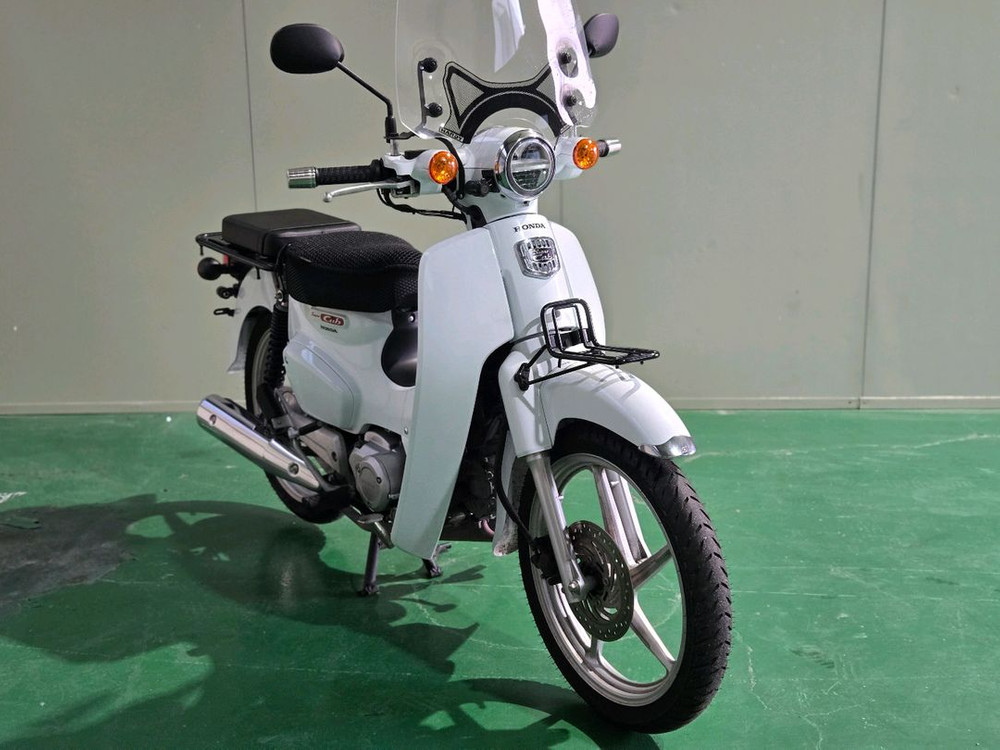 1. 제작사 : 혼다 2. 색상, 배기량 : 흰색 110cc 3. 모델명 : 슈퍼커브 110 4. 제작연식 : 2023 년식 5. 적산거리 : 9,@@@ km 6. 판매 희망가격 : 190 만원 8. 구조변경 (소음기, 등화류, 계기판 / 완료) : 해당없음 계기판,등화류정상 9. 기타튜닝여부 : 2채널 블랙박스,핸들열선 10. 사고, 좌우 전도(꿍/슬립): 11. 소모품및 (상세설명): 폐지되어있으며 서류 3장 구비중입니다. 시동일발이며 RPM일정하며 아이들링 매우정숙한차량입니다.