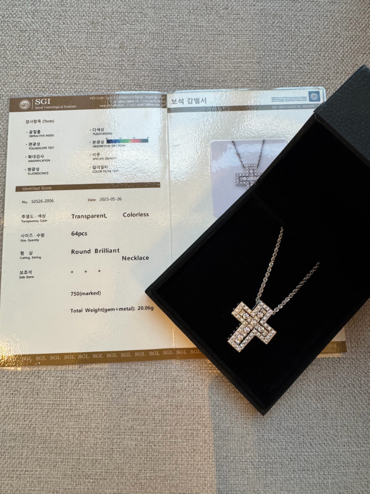 라지 펜던트 총길이 45cm 모이사나이트세팅(랩다이아나 천연다이아는 별로 안반짝여서 모이사로 제작했고 엄청 반짝여요) 총 중량 5.349돈이며 라지사이즈라 일부러 돈 수 높은거로 구매한거고 십자가 분리 다 됩니다 보석 감정서 보유 중 직거래 협의 하에 중간지점에서 가능