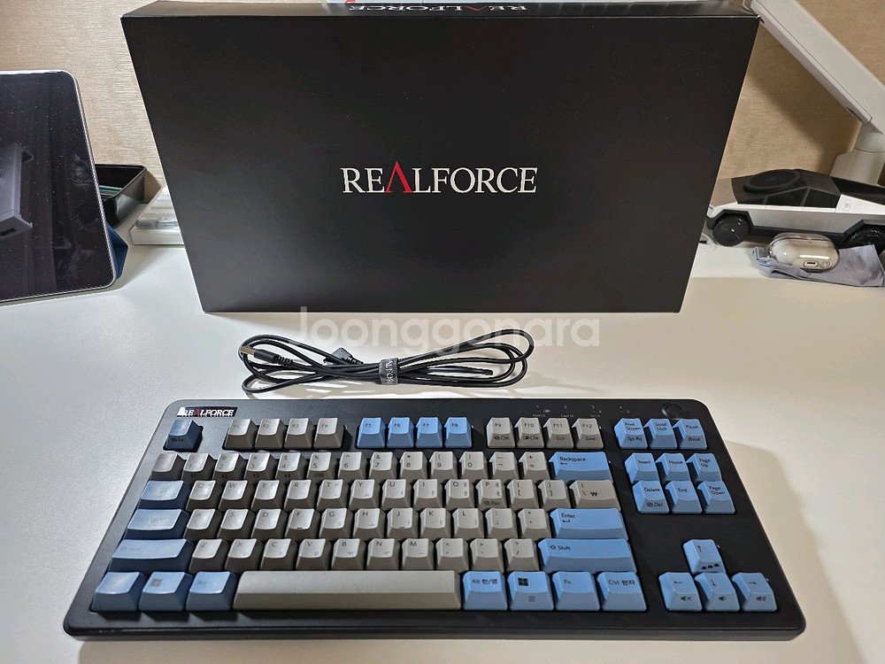 제 네이버 블로그에 타건영상 올려두었으니, 참고 부탁드립니다. 리얼포스R3 TKL 저소음 토프레 무접점 45g 균등 블루그레이 제품으로, 따로 윤활작업 진행하였습니다. 해당 키보드는 무선 블루투스 페어링이 4개까지 가능하며, 유선으로도 연결하여 사용가능합니다. 순정(윤활 전) 제품과의 차이 타건 시 발생하는 스태빌라이저 철심 마찰소리를 잡아주었으며, 도각거리는 타건음이 보다 뚜렷하게 들립니다. 또한 타건 시 느껴지는 미세한 쫀득임이 더욱 선명해져 중독성 있고, 타건감이 부드럽고 정갈해졌습니다. 키보드 작업 : 26년 2월 12일 키보드 내, 외부 청소 및 중성세제로 키캡 열탕 세척하였으며, 이후 키보드 기판 방청작업도 진행하였습니다. 2월 18일 모든 키 슬라이더 크라이톡스 104로 윤활 및 GLP205 G2 구리스로 스태빌라이저 철심 부분 작업하여 타건 시 발생하는 스태빌라이저 철심마찰 소리 잡아두었습니다. ※ 스태빌라이저 키 : 스페이스바, 백스페이스, 엔터키, 쉬프트 키 등 크라이톡스 104는 중간점도(크라이톡스 105) 보다 한단계 점도가 낮아, 중간점도 대비 더 부드럽고 키감이 부담스럽지 않습니다. 마지막 사진은 키보드 분해 시 나사머리부가 뭉개져 하단에 표시된 두 곳은 현재 나사가 박혀있지 않습니다. 제품 사용하는데에 전혀 문제도 없고 관련도 없지만 미리 고지드리며, 해당 부분으로 가격을 좀더 깎아 매우 저렴하게 판매중입니다. 직거래 시 수원역에서 진행하며, 택배거래 시 3천원 추가됩니다. 거래이력이 많으니 안심하시고 편안하게 거래하세요! 채팅주세요~ 감사합니다.