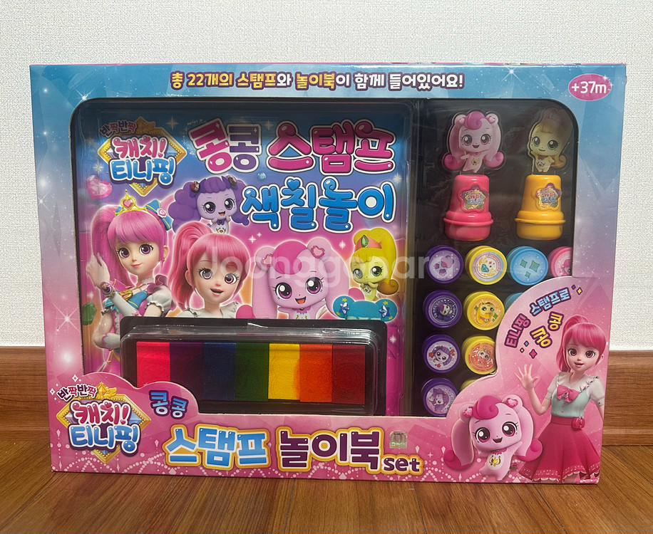 캐치! 티니핑 콩콩 스탬프 놀이북 총 22개의 스탬프와 놀이북이 함께 들어있어요 37개월 이상 사용 가능합니다 구성품은 보이는대로 있고 사용흔적 있습니다